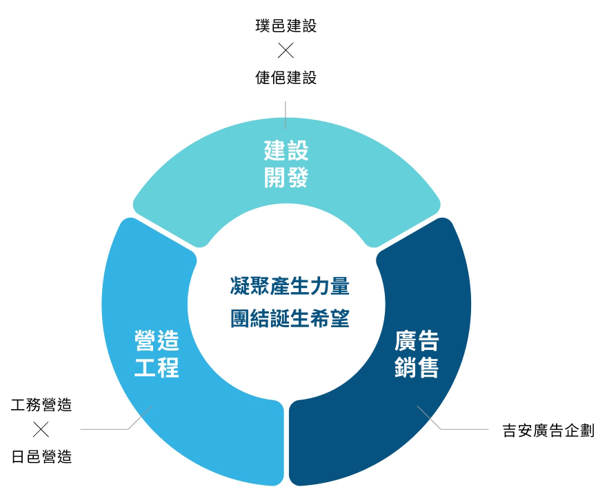 「專業」三十年的經驗累積,集結業界資深專家來精進建築品質、提升且創新技術水平。更要打破制式建築的傳統,創造群聚效應。落實深耕大台中港區用一座座精心規劃的空間語彙,與城市呼應,和在地居民一起進步成長。